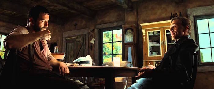 Inglorious basterds (2009) cuenta con la escena que más ha sido estudiada (¿Desea saber más?), en la que el Coronel Hans (Christoph Waltz) tiene una entrevista en casa del francés Perrier (Denis Ménochet). Al más puro estilo Hitchkoniano, se nos hace saber que, efectiviwonder, hay judios escondidos en la casa. La escena, en lugar de terminarse en pocos minutos, se prolonga durante unos veinte minutos. ¡Veinte minutos! Y durante todo ese rato no hay nada más que diálogo e interacción entre ambos personajes, en la que se crea una tensión que es casi insoportable. En esta escena vemos perfectamente otro elemento de un diálogo que, como dijo Juan Gómez-Jurado: «un diálogo es un enfrentamiento entre dos puntos de vista distintos«. Durante esa escena, ambos personaje están teniendo un combate psicológico en el que Hans intenta sacar información mientras que Perrier la oculta y se esfuerza por aparentar normalidad. El resultado es tal tensión que, cuando más adelante vuelve a aparecer Hans en el restaurante, genera desasosiego. Nuevamente, a través de esta escena, no solo ha creado tensión, sino que ha presentado a Hans. Hemos visto cómo actúa, cómo es, su naturaleza, su forma de comportarse. Sabemos que, tras su amabilidad y sonrisa, hay un cazador implacable que no duda en masacrar a quién sea en cualquier momento. Personalmente, creo que es uno de los mejores villanos que he visto, no tanto por cómo es, sino por la manera en que se presenta.